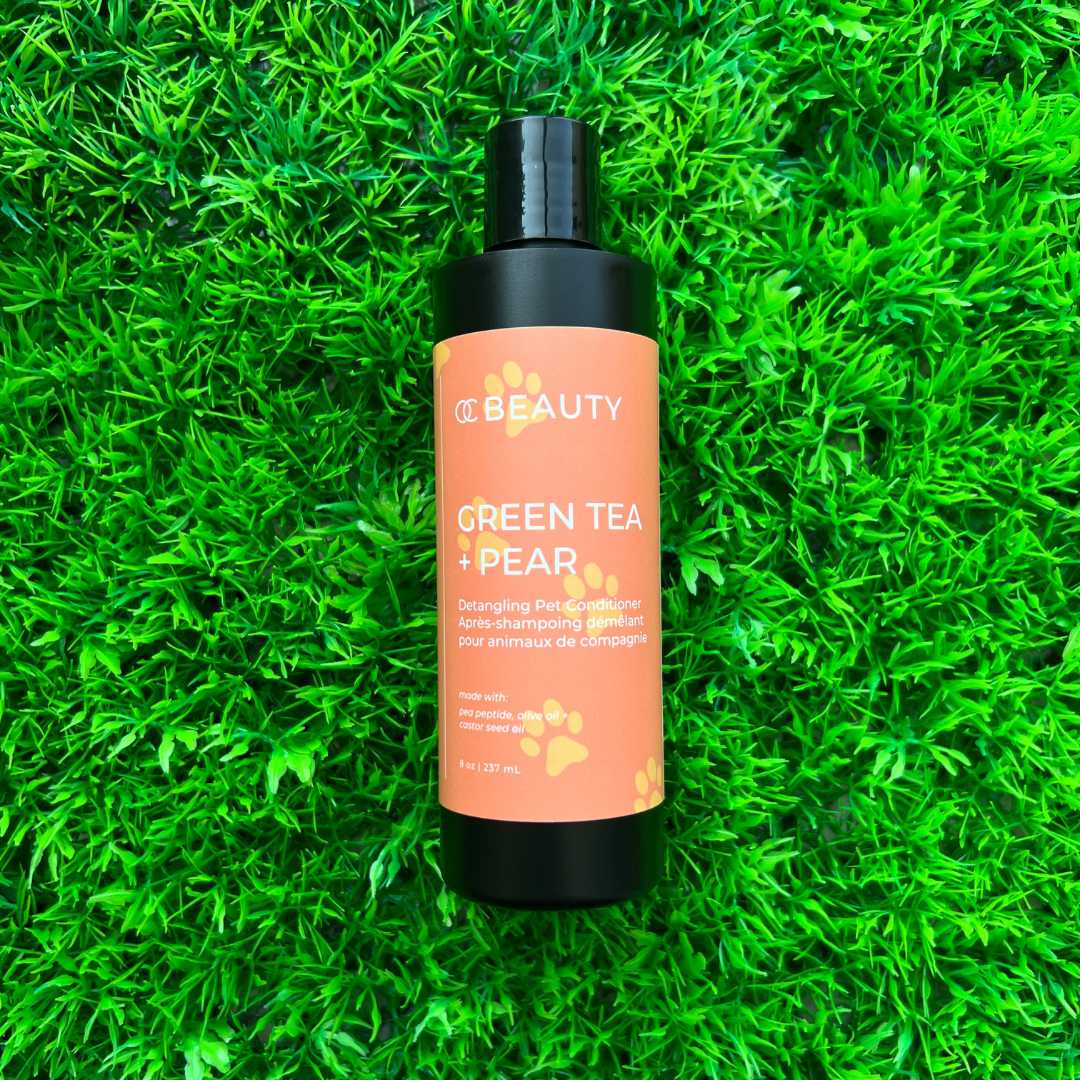 Notre après-shampoing démêlant végétalien pour animaux de compagnie au thé vert et à la poire est composé d'un mélange hydratant d'huile de ricin démêlante, d'huile d'olive et d'huile de coco pour offrir un maximum d'hydratation et de brillance.Formulé pour nourrir le poil tout en réduisant les irritations cutanées. Idéal pour laver votre chien, votre chat ou tout autre animal de compagnie ! Vous et votre compagnon êtes prêts pour une séance de toilettage à domicile.