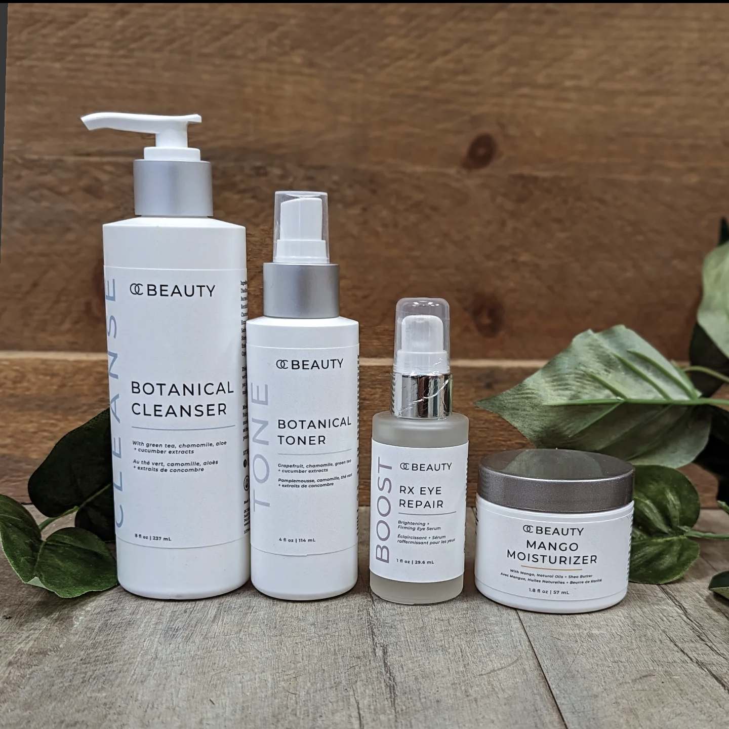 Révélez une peau radieuse grùce à notre routine de soins illuminateurs. Commencez par le nettoyant et la lotion tonique botaniques pour un nouveau départ. Hydratez votre peau avec notre soin hydratant à la mangue, et laissez notre sérum réparateur pour les yeux RX, la star, illuminer et rajeunir votre regard. Rayonnez de vitalité grùce à cette routine essentielle et harmonieuse.