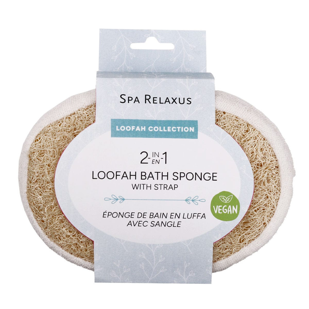 - Éponge de bain luffa végétalienne 2 en 1 avec sangle.