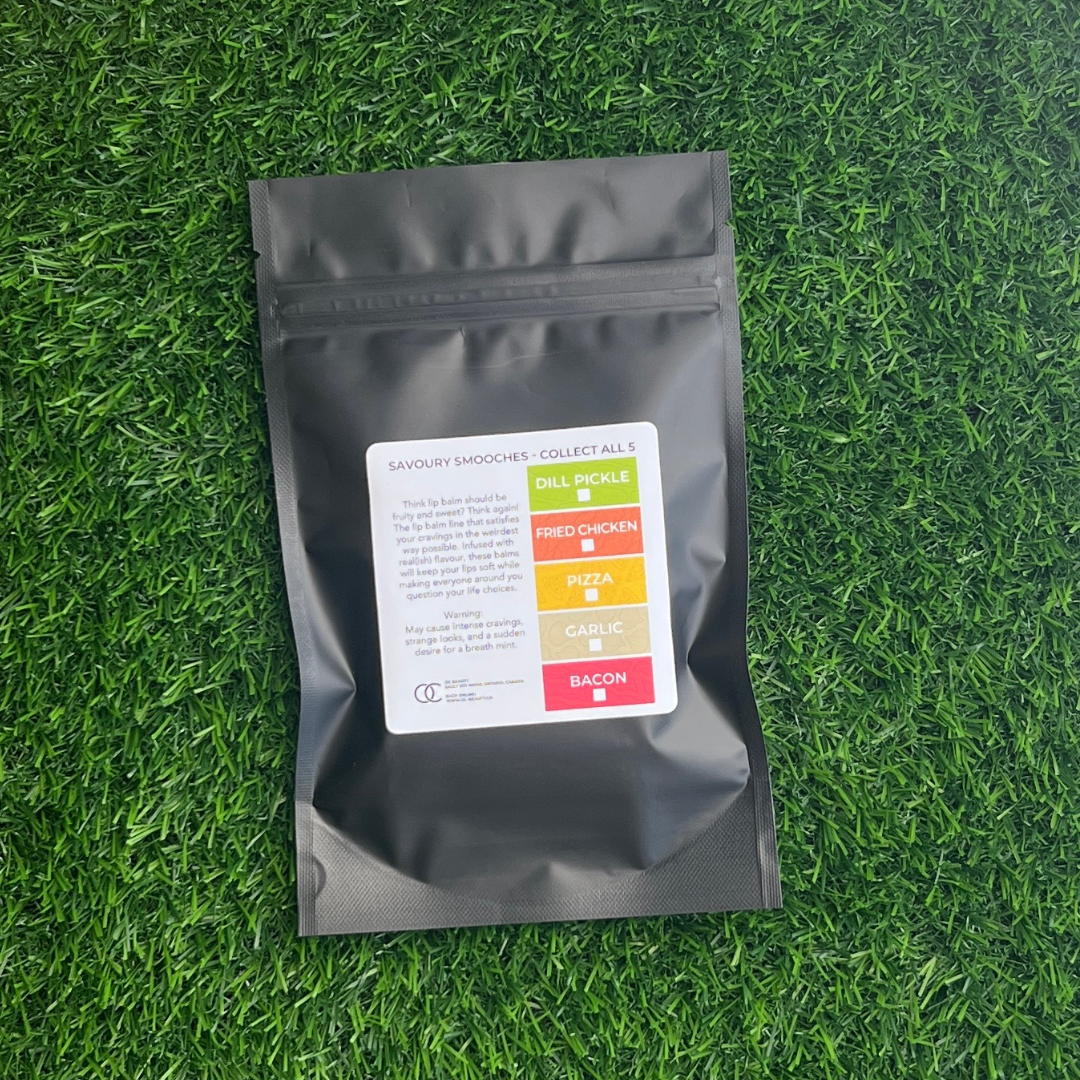 Les baumes salés contiennent des saveurs inattendues comme l'ail, le cornichon à l'aneth, la pizza, le bacon et le poulet frit. Chaque paquet contient un baume salé choisi au hasard ; essayez de tous les collectionner.